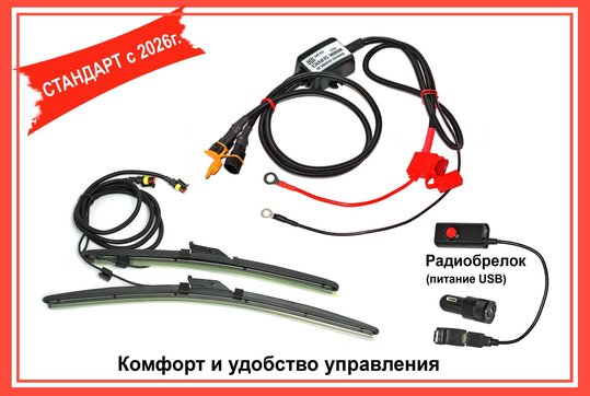 Комплект из двух щеток. Управление по плюсу: с кнопки в салоне или с прикуривателя